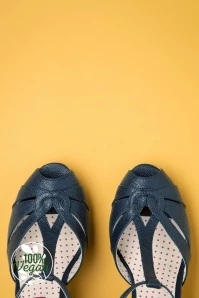 In the 1920s and 1930s women started showing off their legs, creating a demand for more elegant women’s shoes! And these 30s Lacey Art Deco T-Strap Pumps in Matte Navy Blue will catch many favourable looks, just like your legs! Made of high quality, textured faux leather in navy blue featuring an elegant T-strap in art-deco style and a sexy peep toe. Thanks to the subtle platform they feel less high than they seem and in combination with the soft insole bring easy-to-wear comfort to these beauties. This season you should let your feet do the talking 😉