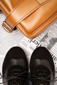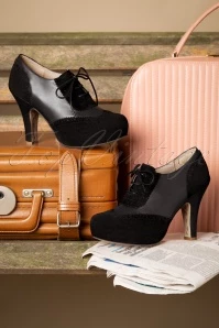 forties. These 40s Angie On Track Shoe Booties in Black are made of high quality black leather and suede featuring an elegant lace-up fastening and brogue detailing. The sturdy, high heel adds the perfect finishing touch while the soft insole and hidden platform bring easy-to-wear comfort to these beauties. Stay on the right track and order these beauties right now! 😉