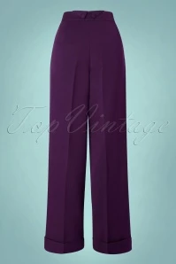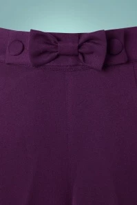 These 40s Hidden Away Trousers in Aubergine are inspired on the trousers that those progressive women in the 40s / 50s wore! The high waist forms a beautiful contrast with the wide leg and is very flattering, also with fuller hips/bottom. The bow and button detail at the back finish it off perfectly. Made from a supple, aubergine purple fabric with a light stretch and finished off with a chic fold over detail at the legs. Pair with a white blouse for a classy look or with a striking top for a sassy look! Pair with a blouse and pumps for a day at the office in retro style!