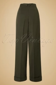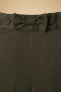 These 40s Mindy Hide Away Trousers in Olive Green are inspired on the trousers that those progressive women in the 40s / 50s wore! The high waist forms a beautiful contrast with the wide leg and is very flattering, also with fuller hips/bottom. The olive green bow and button detail at the back finish it off perfectly. Made from a supple olive green fabric with a light stretch and finished off with a chic fold over detail at the legs. Pair with a white blouse for a classy look or with a striking top for a sassy look! Pair with a white blouse and pumps for a day at the office in retro style!