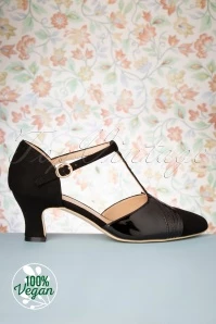 ”New York is not a place, it’s a feeling!” With these 40s New York Luxe Pumps in Black, Charlie Stone shows us how luxurious vegan can be! A 40s dream ballroom pump made of vegan suede and vegan patent leather styled with a playful T-strap and an elegant heel. Dance the night away!
