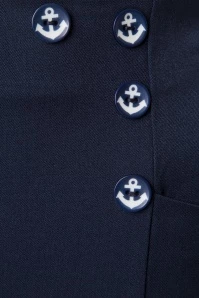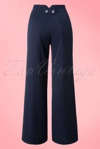 These 40s Stay Awhile Trousers in Navy are inspired on the trousers that those progressive women in the 40s / 50s wore! The high waist forms a beautiful contrast with the wide leg and is very flattering, also with fuller hips/bottom. The faux anchor buttons give it a sailor touch and finish it off perfectly. Made from a supple, light stretchy fabric in a dark blue colour for a lovely fit. We like sailors but LOVE the sailor style!