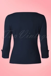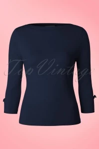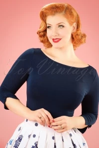 Elegant and cute this 50s Addicted Sweater! Audrey Hepburn also couldn’t get enough of it! Simple and yet so elegant due to the adorable detailing 😉 The top features a beautiful slash neckline and flattering 3/4 sleeves finished off with slits and little fixed bows, só cute! Made from a lovely supple, stretchy, fine knitted dark blue viscose blend that will keep its shape, even after a few washes. A versatile classy top which can’t be missed in every vintage lady’s wardrobe, the name says it all; we’re addicted!