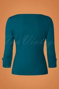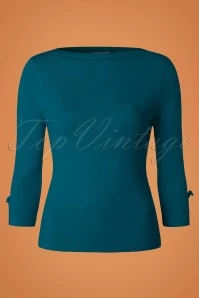 Elegant and cute this 50s Addicted Sweater in Teal! Simple and yet so elegant due to the adorable detailing! The top features a beautiful slash neckline and flattering 3/4 sleeves finished off with slits and little fixed bows, só cute! Made from a lovely supple, stretchy teal blue viscose blend that will keep its shape, even after a few washes. A versatile classy top which can’t be missed in every vintage lady’s wardrobe, the name says it all; we’re addicted!
