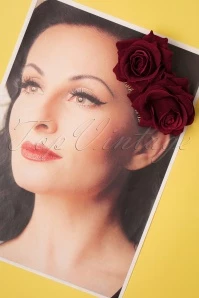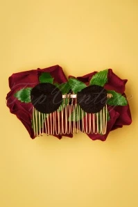 This 50s Be My Valentine Hairpin in Burgundy looks great with a (partial) updo! This comb pin is suitable for every hair type and texture and will stay in place. Made of gold toned metal with an appliqué of two gorgeous, burgundy-red roses that will never fade away 😉