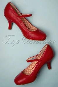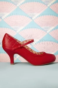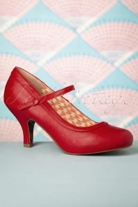 A party or a day at the office… with these 50s Bettie Pumps in Red you’ll always look fantastic! The perfect pumps, right?! A comfy heel, super elegant, ultra-versatile and with a vintage look to boot 😉 Made of lipstick-red faux leather styled with a cute strap across the vamp that’s finished off with a small elastic ensuring a perfect fit without pinching. Bettie Page knows what women want, elegance with comfort… Versatile vintage must-have!