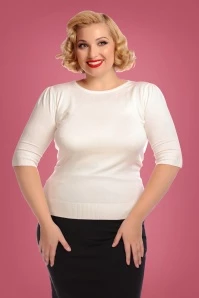 The combination possibilities are endless with this 50s Chrissie Knitted Top in Ivory! Chrissie comes in a timeless ivory colour and features a round neckline and elbow-length puff sleeves. Made of a thicker yet soft and stretchy, fine knit fabric that’s a joy to wear. Fashion dilemmas will be a thing of the past with this beauty in your wardrobe!