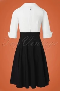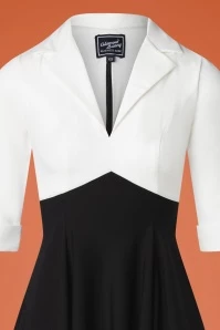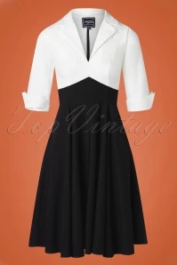 ‘Invest in yourself!’ And what will be your first investment? A power dress like this 50s Dianne Two Toned Swing Dress in Black and White! This season our talented in-house designers were once again inspired by the ambition and perseverance of our very own Boss Lady Angelique who makes all of her dreams come true… that’s what we call women empowerment! Stay focused while looking fabulous in this two-toned swing beauty. The crispy white top flaunts a V-neckline with a pointy lapel collar and ¾ sleeves with pointy turn-ups. The high waist is positioned just underneath the bust and from there she flows into a graceful swing skirt that is very flattering on both a narrow and a wider hip. Made of a firm, yet supple, black-and-white fabric with just a hint of stretch that beautifully sways with every move you make. Just remember hunnie: ‘A real business babe doesn’t do drama, she does deposits!’