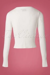 This 50s Dolly Cardigan in Ivory White makes with a perfect match with any outfit! Dolly is classic, comfortable ánd playful. This short cardi features an elegant round neckline, long sleeves and shiny buttons. Made from a fine knitted, ivory white fabric with a lovely stretch for a perfect fit. The combination possibilities are endless!