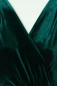 Vintage, versatile and very va-va-voom best describe this 50s Elena Velvet Pencil Dress in Green! Styled with a pleated surplice neckline, long puff sleeves with wide cuffs and a fitted skirt that hugs your curves and is super flattering. Made of a lovely supple and stretchy, soft, dark-green fabric with the look and feel of velvet that is comfy to wear. Ready to blow people away with Elena?