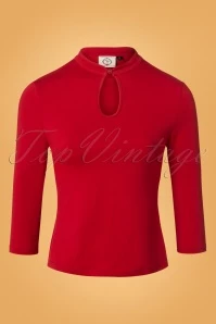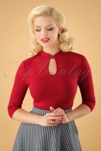 Be a real femme fatale in this 50s Emily Pee a Boo Top in Red! Emily is a real beauty! This top features playful 3/4 sleeves but the real eyecatcher is the subtle keyhole finished off with a pearl button. Made of supple, red cotton with a lovely stretch for a perfect fit. Spice it up or keep it classy, don’t we all need a little bit of “Emily” in our lives?