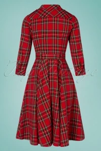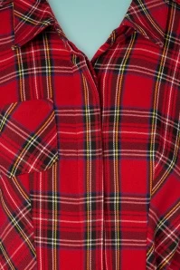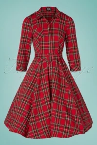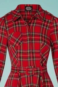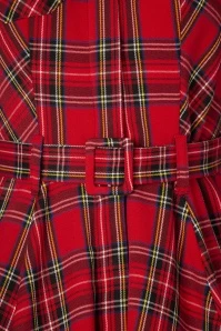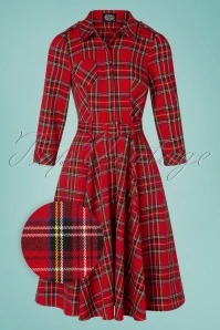 The classic tartan check with a twist! This 50s Evie Tartan Swing Dress in Red really stands out thanks to her warm, deep-red hue! But there is so much more to her like the blouse-style bodice with a playful collar, the row of buttons, the chest patch pocket and the 3/4 cuffed sleeves. From the fitted waist, which is adorned with a detachable fabric belt, she runs down into a flowy swing skirt with handy pockets for a feminine fifties silhouette. Made of a sturdy, yet supple fabric (barely stretches) with a classic tartan check.