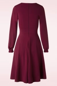 Feminine and flirty best describe this 50s Helaine Swing Dress in Wine Red! She features a fixed wrap over, long puffy sleeves and from the waist down she runs into a flowy semi-swing skirt. Made of a supple and stretchy, wine-red fabric that is a joy to wear. Helaine is super versatile and a real wardrobe essential for every woman!
