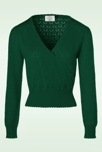 This 50s Instinct Wrap Top in Forest Green makes you feel like a real woman! You’ll make men go wild when wearing this stunning wrap top! The style is beautiful on it’s own but the scalloped ribboard and elegant openworked ajour drops pattern finish it off completely. Made from a stretchy, fine knitted dark green viscose blend for a lovely fit. Your first instinct is always right… and our instinct tells us we should have this fabulous top! 😉