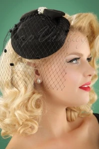 This 50s Judy Hat in Black will make you look super elegant while adding the perfect finishing touch to your glamorous party outfit! This stunning fascinator is styled with a big bow, faux pearls and a mysterious black veil with velvet polkadots. Finished off with a black hair clip that will keep the hat from sliding off. Planning a party? Don’t forget Judy!