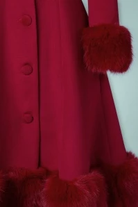 Wear this 50s Lacey Swing Coat in Bordeaux for a statement-making entrance! And yes, she isn’t just beautiful but she will also keep you cosy and warm! Featuring a stylish rounded collar, long puff sleeves and a gorgeous row of buttons. Made of a luxurious, slightly thicker and soft, burgundy-red fabric (doesn’t stretch) and fully lined. Finished with high quality faux fur detailing in a matching burgundy-red hue. We, women, don’t like the cold? This might be true but somehow Lacey has us dreaming of colder weather! 😉