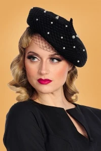 J’adoooore… embrace your inner Parisienne with this 50s Maggie Pearl Beret in Black ! Made of a soft and warm, black fabric and finished off with cream-coloured faux pearls. Imagine café au lait and croissants at a cute little bistro in Paris followed by a stroll to the Eiffel tower… looking stylish wearing this beret! 😉