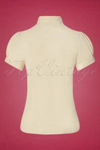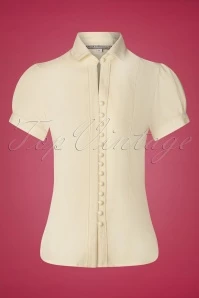 This 50s Margot Blouse in Antique White is a real classic! Styled with a cute Peter Pan collar, short puff sleeves and a row of buttons. You can either opt for a V-neckline or use the button at the collar to create a high neckline style. Made of a supple, crêpe-like fabric (doesn’t stretch) in ivory white that is a joy to wear. Pair with a pencil skirt or high waist trousers with wide legs for a classy fifties look!