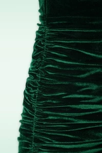 attention! And you are guaranteed to demand attention in this stunner inspired by the designs made by Ceil Chapman, who was Marilyn’s favourite designer! The top flaunts a V-neckline with draped pleating at the bust and elbow-length sleeves that can be worn off-shoulder… ooh la la, Hunnie! Starting below the bust and running down to below your hips, the bengaline shapewear accentuates and enhances your curves, making the most of your hourglass figure. It’s covered with gathered fabric which is elegantly draped and effortlessly camouflages any problem areas. Made of a thicker, yet supple and soft, stretchy, dark-green fabric with the look and feel of luxurious velvet for a picture perfect fit! Like Marilyn herself said; “I’m very definitely a woman and I enjoy it!”