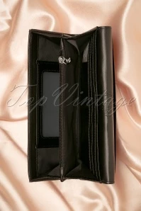 Yes, the cat is out of the bag; this 50s Onyx Wallet in Black is purrrfect for adding some feline charm to your daily routine! The pink and white appliqué of a cat’s face on the front really makes this wallet the cutest of them all. This perfect size wallet is made of sturdy, beautiful quality, black faux leather. She features an extra compartment with a zipper for loose change, storage room for 12 cards and pictures and 2 open compartments for receipts or bills. Finished off with a push button to ensure your money is safe! Miaow, I want it… NOW!