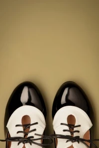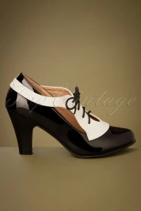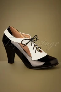 Influence others with your (retro) style when wearing these 50s Retro Influencer Pumps in Black and White! Made of a combination of black faux patent leather and creamy-white faux leather, styled with dainty cutouts and a handy lace-up fastening. Thanks to the soft insole and the modest cone heel you’ll be light on your feet all day long. Can you picture yourself wearing these black-and-white beauties on your feet? 😉