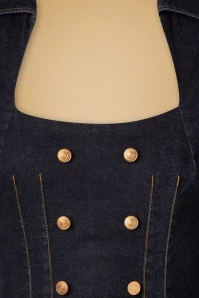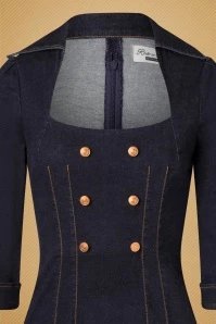 now our in-house designers have given her a sassy denim makeover. Flaunting an enchanting square neckline, a sassy collar, 3/4 puff sleeves with pointy turn-ups and copper-toned decorative buttons down the bodice, you won’t be able to take your eyes off her. And did we mention that sexy fitted pencil skirt? Ooh la la! She is made of a firm, yet supple and stretchy, dark-blue cotton blend for a curve-hugging fit and finished with dark-yellow stitching for an authentic touch. Be bold, be independent but most of all: be prepared for all the admiring glances!