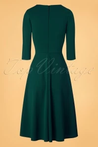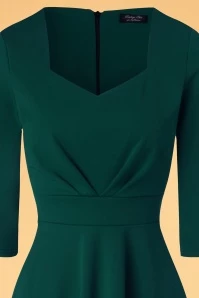 Feminine and flirty this 50s Ruby Swing Dress in Forest Green! Wow, such a stunner! This vintage inspired beauty features an elegant diamond shaped neckline, a wide waist band and flattering pleats that gracefully run across the bust. The semi-swing skirt in combination with the fitted top creates a super feminine fifties silhouette. Made of a stretchy dark green fabric that is a joy to wear. This one will conquer your heart, and not only yours… 😉