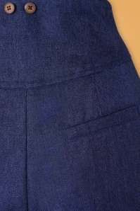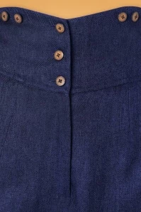 The 50s Sassy Trousers in Blue are inspired by the trousers that progressive women wore in the 1940s & 1950s! The feminine high waist contrasts beautifully with the wide leg and is very flattering, especially with fuller hips/buttocks. Thanks to the button detailing this beauty can be worn with braces adding a playful touch. Made of a supple, denim-blue melange fabric (doesn’t stretch) and finished with classy cuffed legs. Pair with a white blouse and pumps for a perfect business look in retro style!