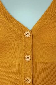 The 50s Shela Cropped Cardigan in Bronze Yellow is an all-time classic! Classy in all its simplicity and therefore THE perfect match with all your vintage items! This short cardi features an elegant V-neckline, 3/4 sleeves and large shiny buttons. Made of a fine knit and soft acrylic blend in cognac yellow with a lovely stretch for a perfect fit. The combination possibilities are endless!