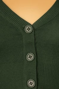 Theย 50s Shela Cropped Cardigan in Hunter Green is an all-time classic! Classy in all its simplicity and therefore THE perfect match with all your vintage items! This short cardi features an elegant V-neckline, 3/4 sleeves and shiny buttons. Made from a fine knitted, soft, dark-green acrylic blend with a lovely stretch for a perfect fit. The combination possibilities are endless!