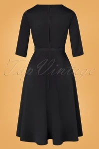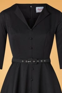Black dresses don’t need to be boring, just look at this classic 50s Winter Rose Swing Dress in Black! From her subtle V-neck and elbow-length sleeves down to the row of decorative buttons down the entire front and the detachable waist belt… this dress breathes feminine elegance into your look! From the waist down, she flows into a semi-swing skirt WITH handy side pockets that beautifully sways with every step you take. Made of a firm, yet supple fabric with just a hint of stretch that is a joy to wear, Life is too short for boring clothes!