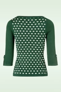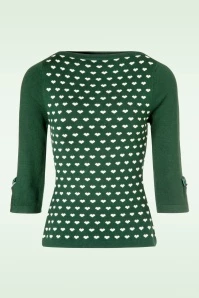 Elegant and cute this 60s Addicted Charming Heart Sweater! Simple and yet so elegant due to the adorable detailing 😉 The top features a beautiful slash neckline and flattering 3/4 sleeves finished off with slits and little fixed bows, só cute! Made from a lovely supple, stretchy, fine knitted dark green viscose blend with a cream coloured hearts pattern that will keep its shape, even after a few washes. All you need is love… and this top. The name says it all; we’re addicted!
