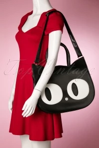 The 60s Lizzy The Big Eyed Cat Bag is a playful and eye catching bag! Look into my gorgeous eyes! This awesome oversized bag is made from black “faux” leather in the shape of a cat’s face with beautiful big eyes, an embroidered little nose and as cute detail, an embroidered paw on the back! With this bag you’ll definitely mesmerize everyone around you! 😉