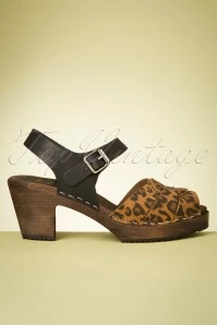 These sixties style 60s Loretta Leather Clogs in Black and Leopard prove that clogs are anything but clunky! Made of high quality black leather featuring a peep toe and a playful leopard print across the vamp. The wooden sole and heel ensure an authentic and playful look with a typical sixties vibe. These comfy sandals will definitely be your new favourite pair! ”Love, peace and hippie-ness!” 😉