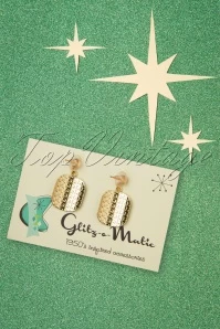 Create a retrolicious look with these 60s Retro Squares Earrings in Gold! These gold-toned studs feature a square pendant in dark green and black. Small, but exquisite!