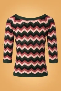Feel the sixties vibe with this 60s Zooey Zig Zag Top in Green and Pink! Simple but still special due to the awesome zigzag pattern! The top features a beautiful round neckline with a bow detail and 3/4 sleeves, so cute! Made of a lovely supple and stretchy viscose blend with a zigzag pattern in green and pink that will keep its shape, even after a few washes. A versatile top that every vintage loving lady should have in her wardrobe 😉