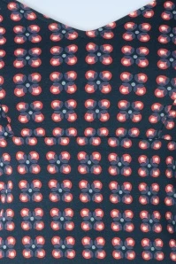 stretchy, dark-blue organic cotton blend, featuring a playful floral print. Listen