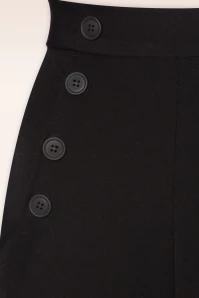 Looking for statement trousers to add to your everyday wardrobe? Then these 40s Carlie Swing Trousers in Black are made for you! With her feminine high waist, charming decorative buttons and elegant wide legs, she adds some forties swing to your wardrobe 😉 Made of a supple, black fabric with a light stretch that is surprisingly comfortable to wear. Are you ready to make a statement?