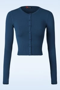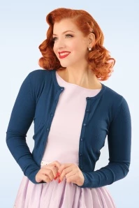 Theย 50s Paloma Cardigan in Blue is a stunning cardigan in vintage fifties style! One can never have to much cardies! This short cutie with a playful round neckline and long sleeves hits just below the waist and is made from a comfy soft, dark blue fabric with a good amount of stretch that will keep its nicely fitted shape. Must-have!