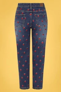 These 50s Strawberry Jeans in Denim Blue are sweeter than a strawberry! The feminine high waist, contrast stitching and 7/8 legs with turn-up cuffs make her the perfect match to both killer heels and sneakers. Made of a firm, denim-blue cotton blend with a light stretch that is super comfy. Can you resist this summery beauty? 😉