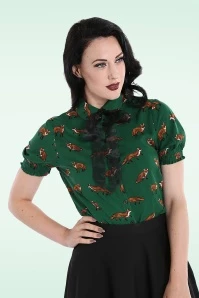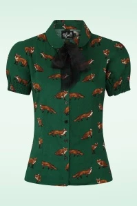 Looking foxy has never been easier, thanks to this 50s Vixey Blouse in Dark Green! If her cute short puff sleeves and her playful chiffon bow haven’t won you over yet, the adorable foxes will convince you to add her to your shopping bag! Made of a supple, viscose (doesn’t stretch!) in dark green and finished off with small black buttons at the front. Vixey, get in my shopping bag!