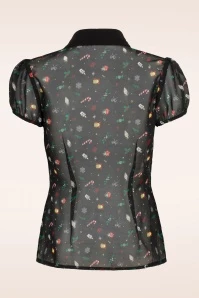 New autumn/winter collection ~ Sleigh all day in our jolly and stylish blouse! 😉 Made of a supple and sheer, black fabric (doesn’t stretch) with festive motifs scattered all over.