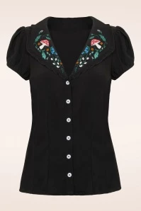 New autumn/winter collection ~ Roses are red, violets are blue, this blouse is adorable, just like you! Made of a supple, black viscose (doesn’t stretch) adorned with gorgeous embroidery.