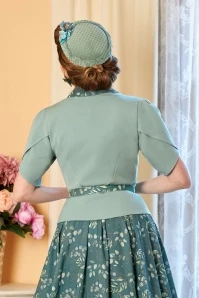 Bring a touch of feminine charm to any occasion with Daria! This short blazer with a detachable collar is inspired by the flawless style of none other than Queen Elizabeth II. Made of a firm but airy, mint-blue fabric that is lined for an extra comfy fit.