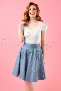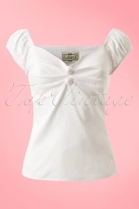 Hola señorita! The 50s Dolores Top in White is truly a must-have! Top in carmen style, cute puffy sleeves which can be worn off-shoulder and pleats at the bust for a beautiful cleavage. Made from a white cotton blend with a light stretch for a lovely fit. The always oh so pretty Dolores!