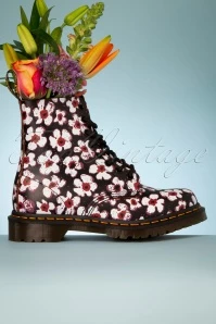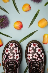 Every woman can be a bad ass! Especially when wearing the right shoes 😉 Wear these 1460 Pansy Fayre Vintage Boots in Black with your (vintage) outfit and make a statement! Dr. Martens established its reputation creating robust boots with comfort and durability in mind. Just like these boots, made of soft and smooth black leather flaunting a print of red/white pansies. Finished off with an 8-eye lace-up fastening and the iconic, sturdy Goodyear welt with its well-known yellow stitching. Thanks to the unique, oh so comfortable, air-cushioned “AirWair” sole, your feet will never want to wear anything else anymore. They’re a great match with jeans, of course, but don’t hesitate to pair them with a swing dress and matching petticoat for a feminine, but edgy look! “Bloom baby, bloom!”