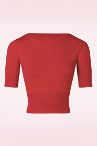 This Dreamy Jumper in Red is timeless, elegant and so easy to combine! Styled with a classic bateau neckline and flattering ½ sleeves, finished with a ribbed trim. Made of a lovely supple and stretchy, red viscose blend that will keep its shape, even after a few washes. A versatile classy top that every vintage lady should have in her wardrobe!