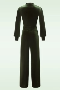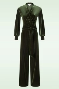 New autumn/winter collection ~ ”There’s something magical about velvet.” A timeless jumpsuit featuring a bodice flaunting a wrap neckline, long puff sleeves and fixed tie straps. She fits perfectly around the waist, while the flattering wide legs make your legs look endless. Made of a soft, supple and stretchy, olive-green velour fabric that is a joy to wear. This iconic garment is the perfect choice for both work and parties… must-have!