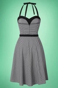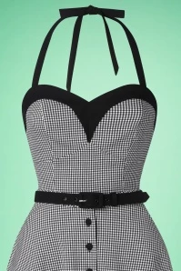 This Foxy Playsuit with Overskirt in Black Gingham from the new ‘Summer Breeze Baby’ collection by Glamour Bunny is the perfect companion for the girl on the go! Wear her as a playsuit to the beach or wear her with the matching skirt for a dressed-up evening look! Foxy is styled with a sweetheart neckline with detachable halter straps and a detachable waist belt based on Jantzen swimwear… so a sexy silhouette is guaranteed. The black gingham pattern adds a hint of Brigitte Bardot… ooh la la. Made of a firm, yet supple fabric with a light stretch for a curve-hugging, yet flattering fit. Picture it… you in your pink