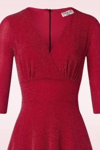 Gloria Glitter Swing Dress in Red, you are the love of my life! She flaunts a pleated surplice neckline, ¾ sleeves, a flattering wide waist band and a flowy swing skirt. Made of a supple and stretchy, deep-red fabric woven with silver-toned glitter. When you love what you have, you have everything you need!